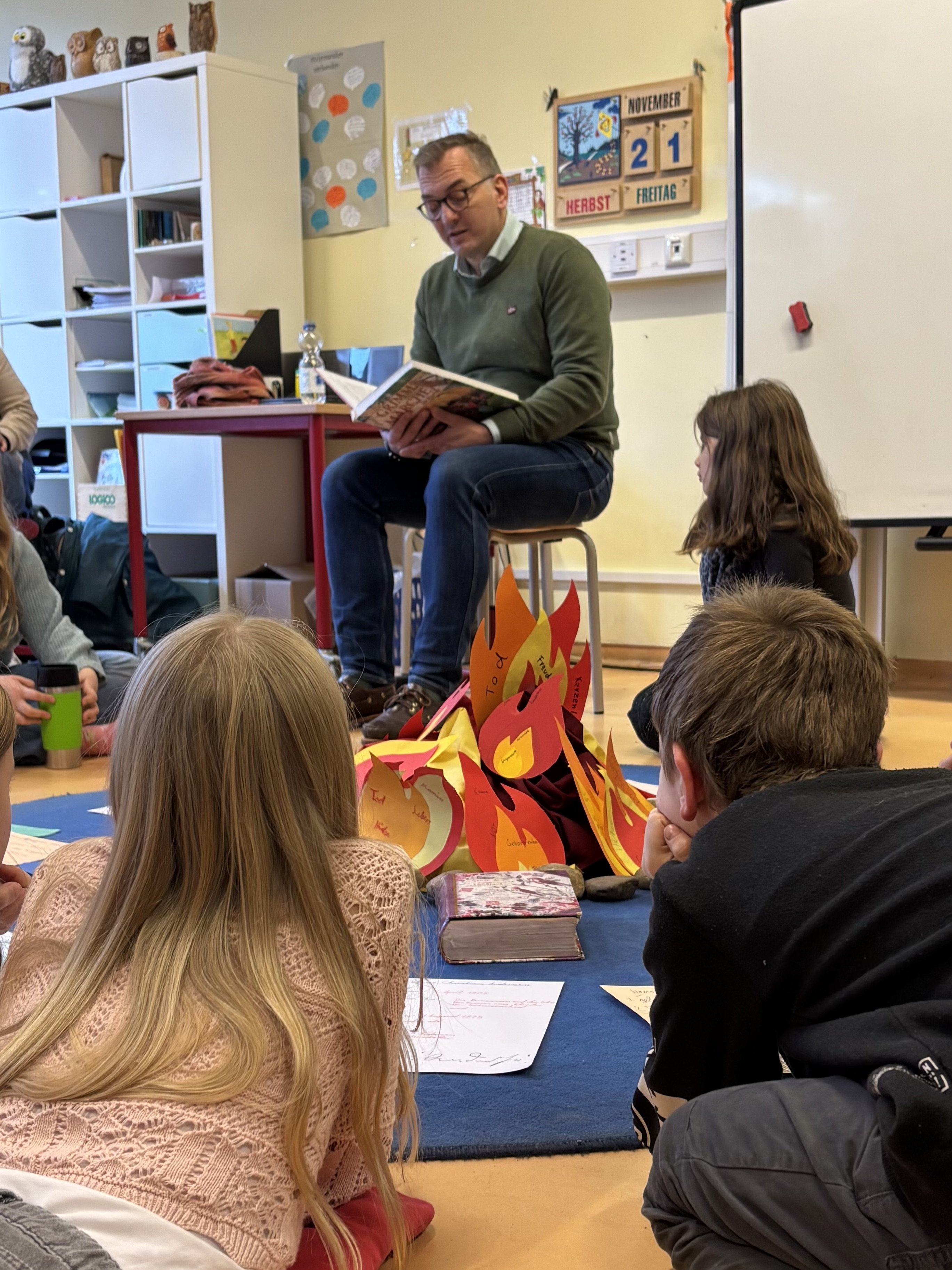Ein besonderer Gast war zudem der kaufmännische Vorstand der Edith-Stein-Schulstiftung, Herr Gora, der ebenfalls zum Buch griff und die Kinder mit einer lebendigen Lesung begeisterte. Die Schülerinnen und Schüler freuten sich sehr über seinen Besuch und die Wertschätzung, die er ihnen und ihrer Lesekultur entgegenbrachte.